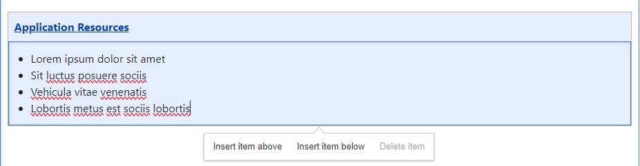 - Select Insert item above or Insert item below to add additional accordion Items.