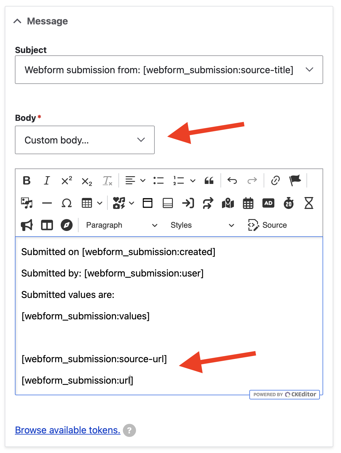 - Link to submission: [webform_submission:url:?] - this token is helpful if you need access to files that may have been attached to the form submission.